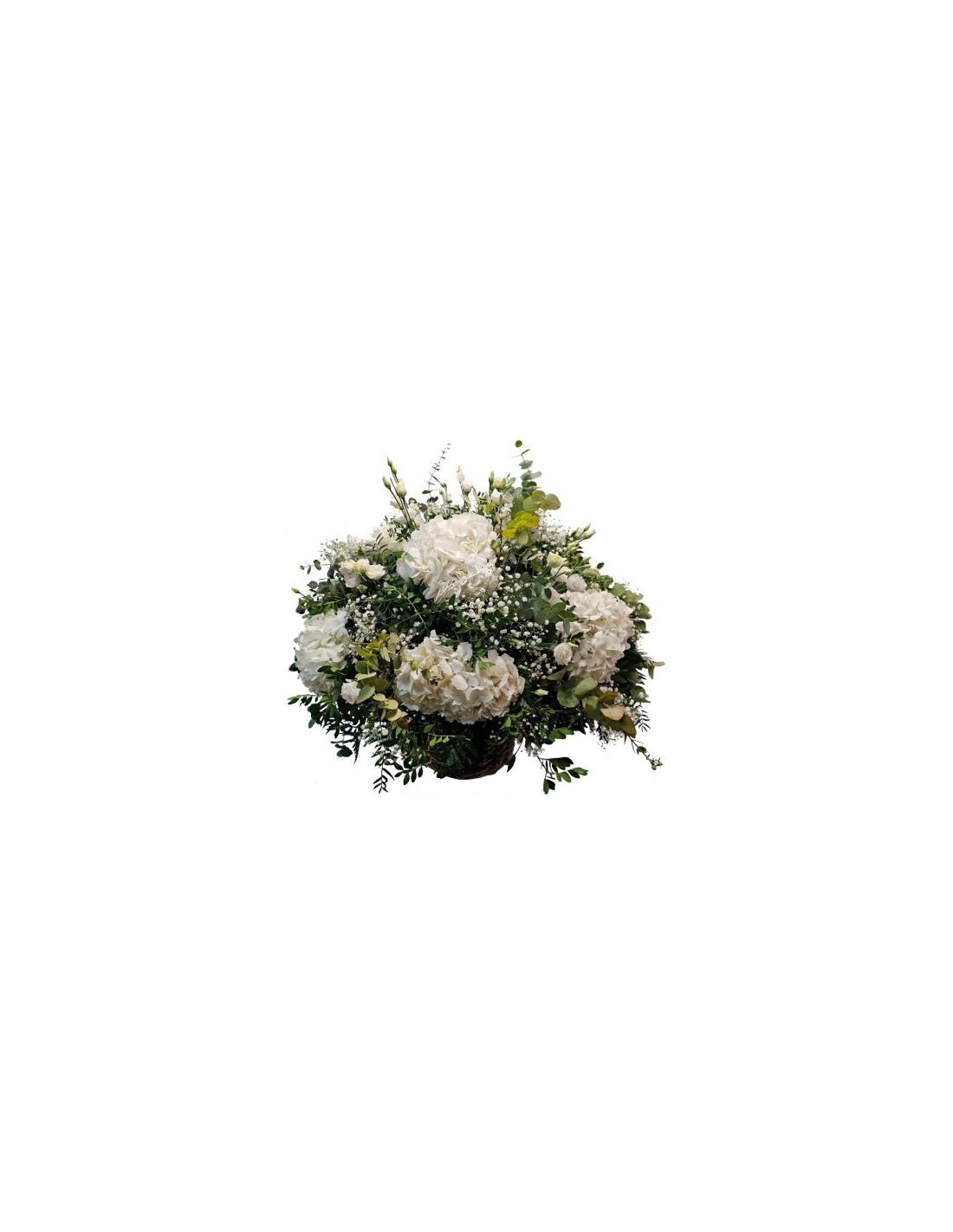 Canasto XXL de gran formato compuesto por flores tales como lilium, margaritas, alstromelias, hortensias, statice, paniculata y diferentes tipos de verdes. Base formada por un capazo de mimbre decorativo de alta calidad. Tamaño aproximado 80x80 cm. Ideal para crear un gran impacto.
